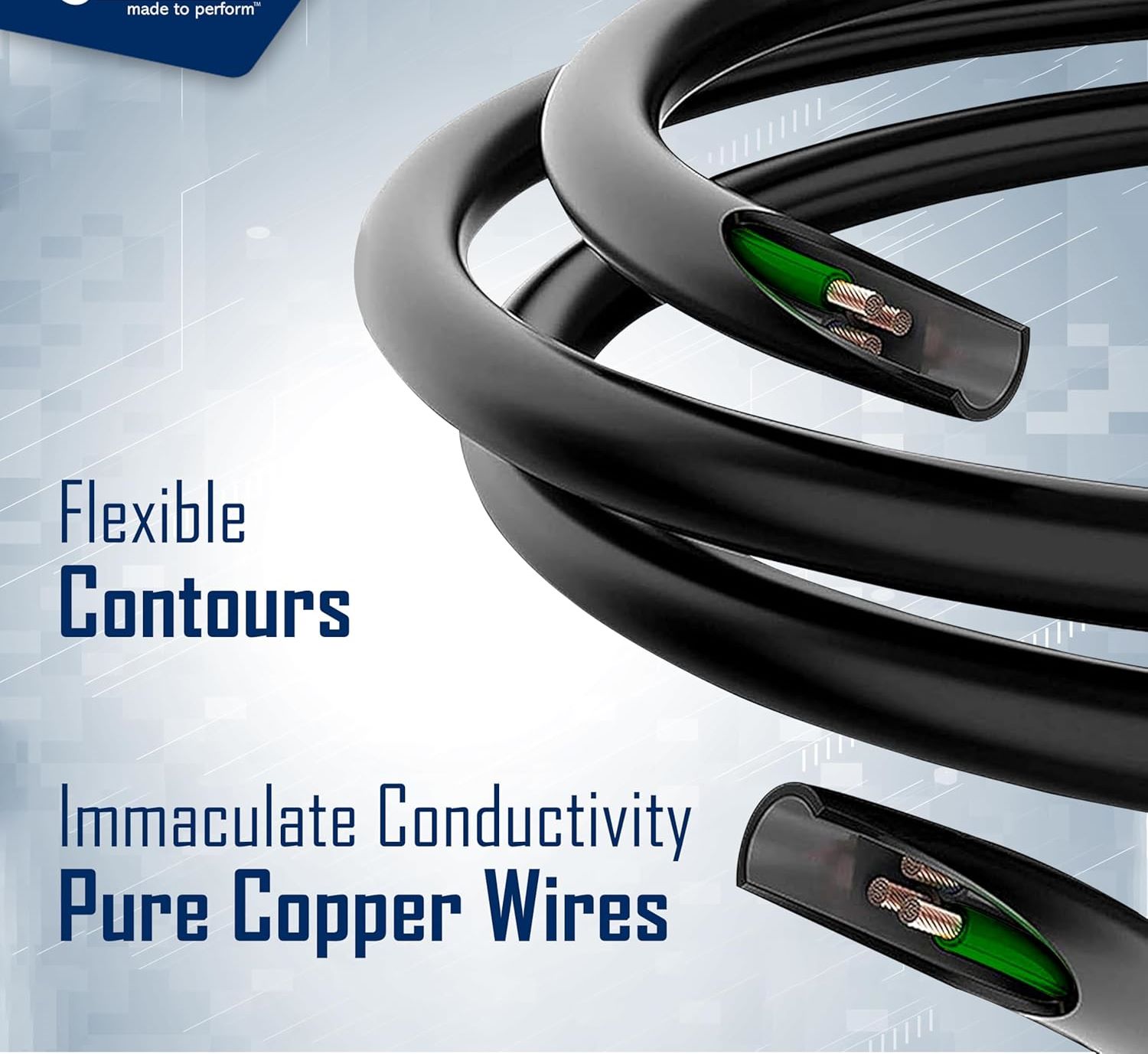 Safety Standards - Certified to meet safety Standards.Material - Made of durable flexible PVC and Rubber material for long-lasting use. Durability - Designed to resist wear, with reinforced connectors and strain relief to prevent fraying.Shielding - Includes internal shielding to protect against ele...