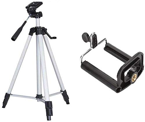 H S 330 A Aluminum Portable Tripod Stand 3 Way Head for Digital Camera Camcorder with Mobile Holder Tripod Kit (Supports Up to 3000 g)