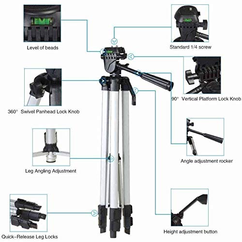 330A is a lightweight, aluminum, 3-way pan-head tripod for DSLR cameras. The built in level allows for optimal precision while the quick lever lock allows for split second adjustments. This tripod is perfect for on the go photos. Box contains one Mobile holder also for all mobile phone screen size u...
