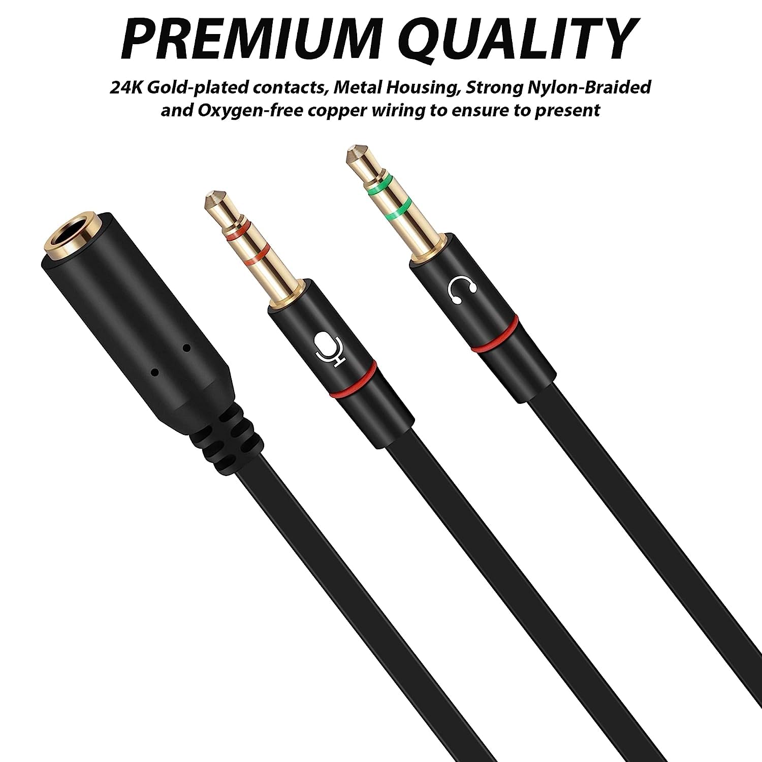 3.5 mm Headphone Splitter for Computer 2 Male to 1 Female 3.5mm Headphone Mic Audio Y Splitter Cable