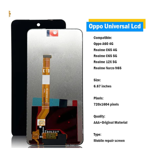 Upgrade your smartphone's display with this high-quality IPS LCD screen and digitizer assembly, specifically designed for Realme Narzo N65 5G, C65 5G, C65 4G, 12x 5G, and Oppo A60 4G models. This OEM Grade S display offers crystal-clear visuals and responsive touch functionality, ensuring a seam...