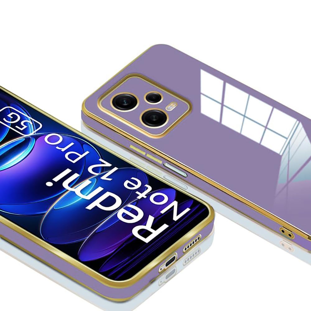 Electroplated Chrome 6D Back Case Cover | Gold Plated Frame | Slim Shockproof Soft TPU | Compatible for Redmi Note 12 Pro 5G