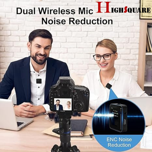 High Square SX9 Wireless Microphone for PC/iPhone, All Smartphones & Camera Collar mic (2 Microphones 1 Receiver) Ultra-Long Life 360 ° Noise Reduction HD Radio Double vlog/Live/Video Recording.