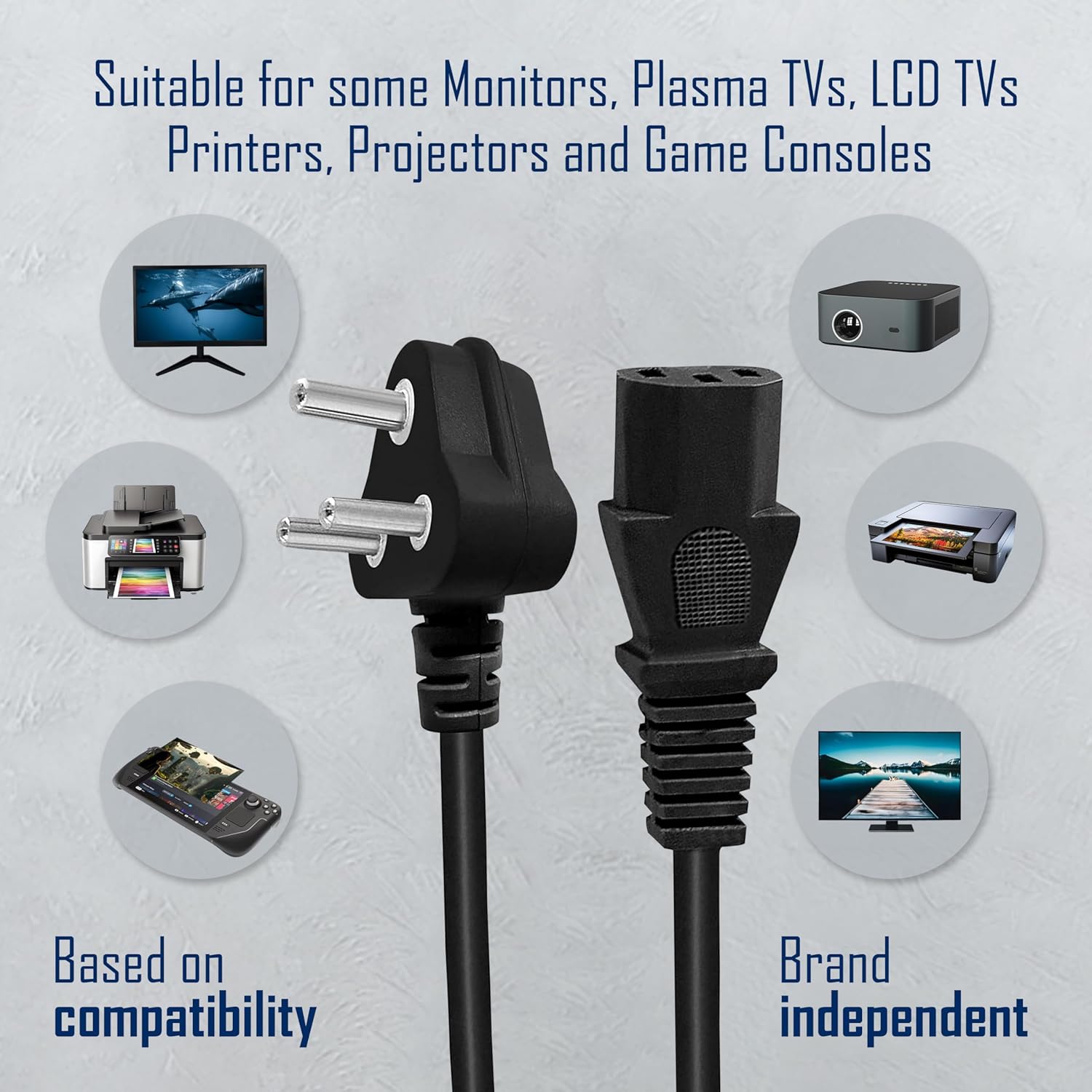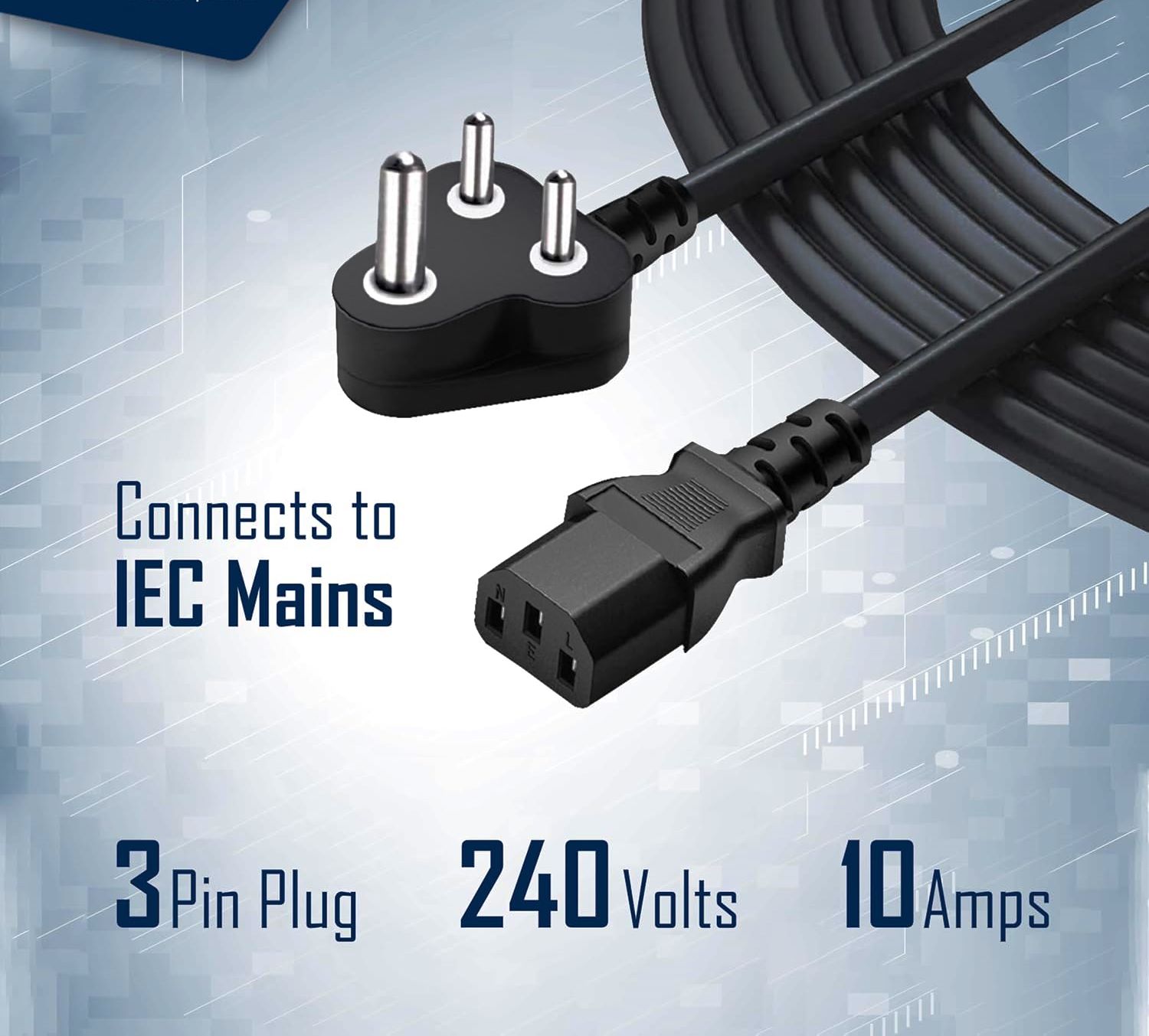 1.5 Meter Computer Power Cable Cord for Desktops PC, Printers, Monitors, SMPS Power Cable (Black)