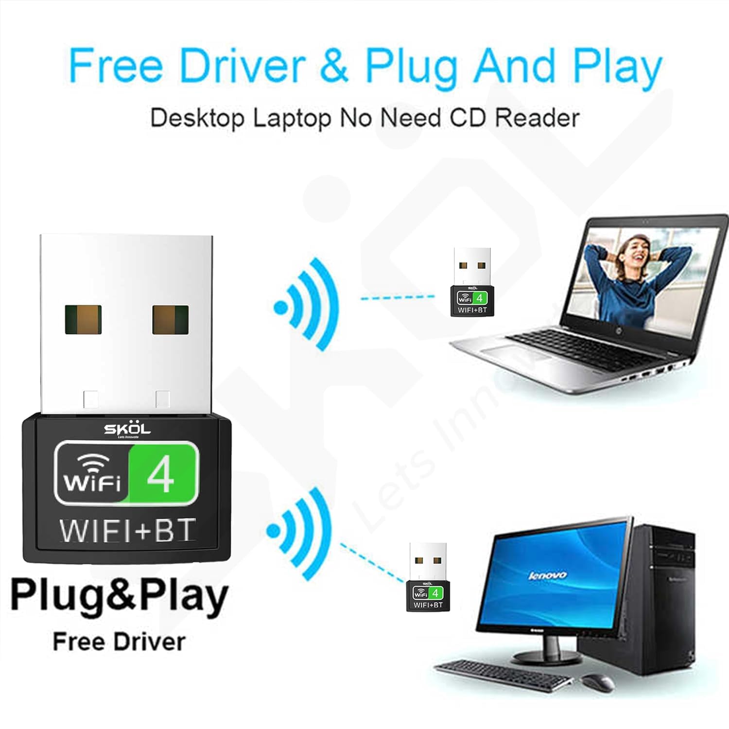 2 in 1 Wireless BT WiFi Dongle, Dual Band Bluetooth & WiFi Adapter for PC/Laptop/Desktop