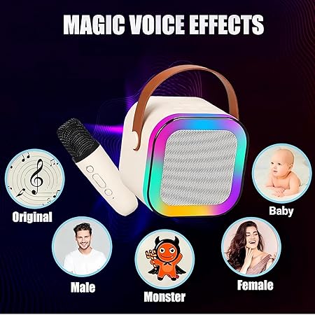 H S Rechargeable Karaoke Mic with Speaker for Singing | Wireless Mini Portable Bluetooth Speaker with Microphone & LED Lights