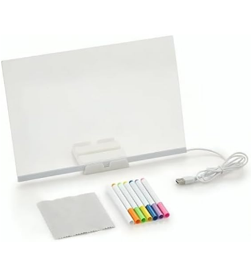 LED Message Board with Markers – Glowing Acrylic Writing Board with Colorful Pens | USB Powered Dry Erase Light Up Board for Notes, Study Desk, Office & Kids Gift (30 x 20 Cm)