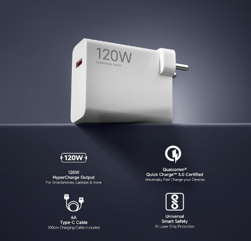Mi Xiaomi Original 120W Hyper Charge Adapter with 6A Cable - Fast Charging for Mobile