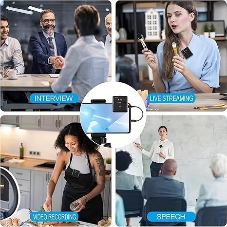 Compatible Devices Personal Computer, Radio, Camera, Smartphone Colour Black Included Components 1 x Light_ning to Type C Cable nylon braided, 1 x 3.5mm both side cable, 2 x Transmitter, 1 x Type C to Type C Cable nylon braided, 1 x Rece...