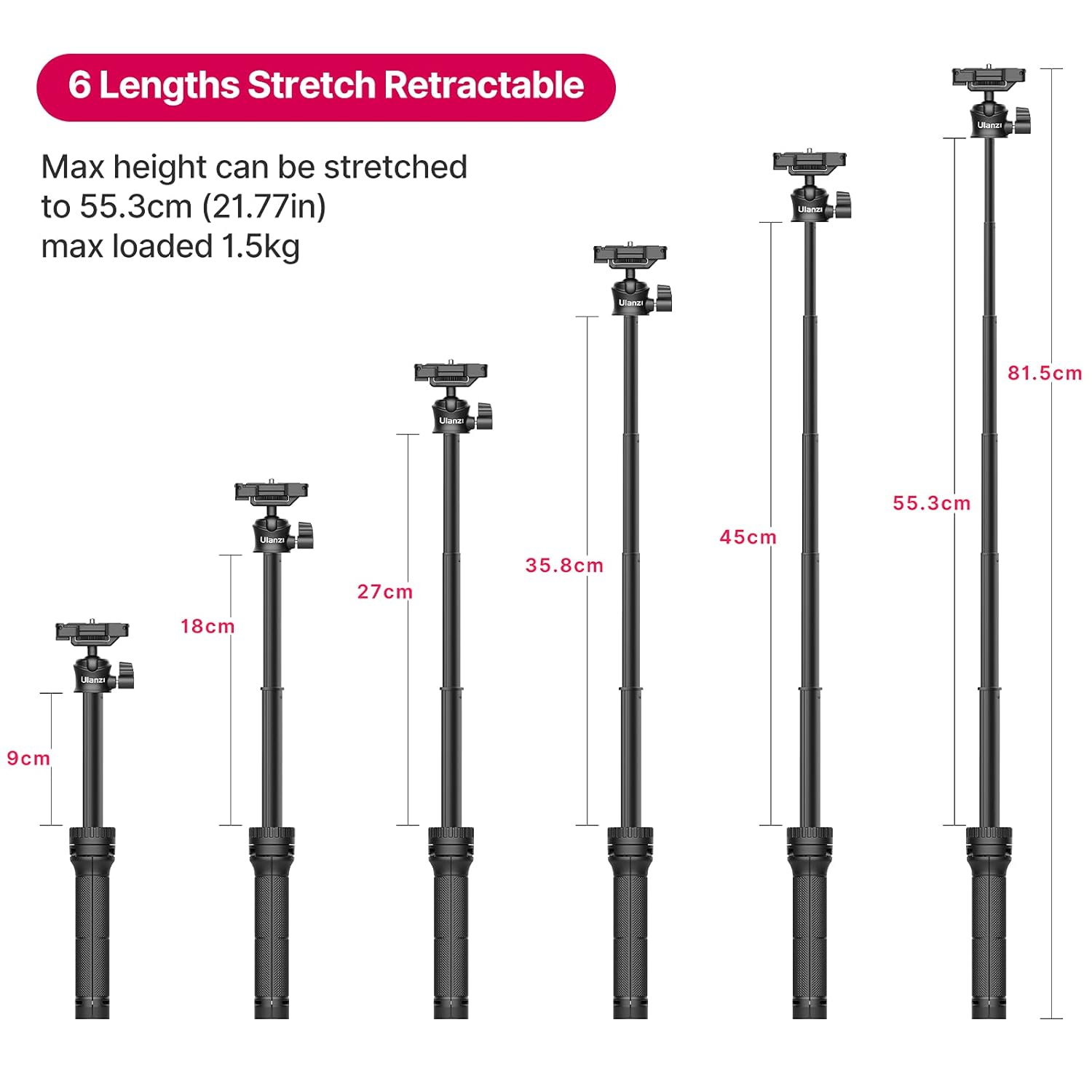 Ulanzi MT-34 Extendable Pole Tripod for Camera, Selfie Stick with 2 in 1 Phone Clamp, Handle Grip w 1/4" universal screw, Compatible w iPhone 11 Pro Max XS Max X 8 7 Samsung Canon Nikon Sony Cameras